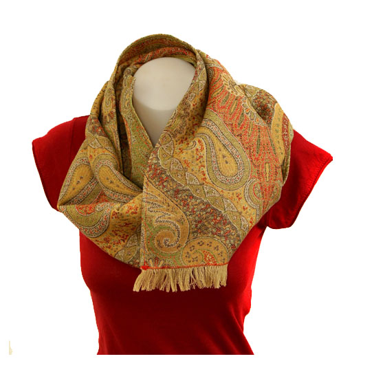 Paisley-Schal, ca 203 cm x 35 cm, 100% Schurwolle,mit jeweils 3cm langen Fransen an den kurzen Enden. Ein eleganter Klassiker, zur Abendgarderobe und auch lässig zu tragen.