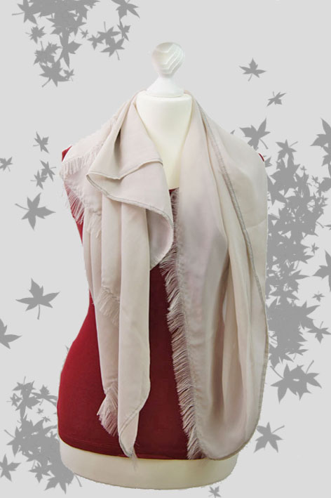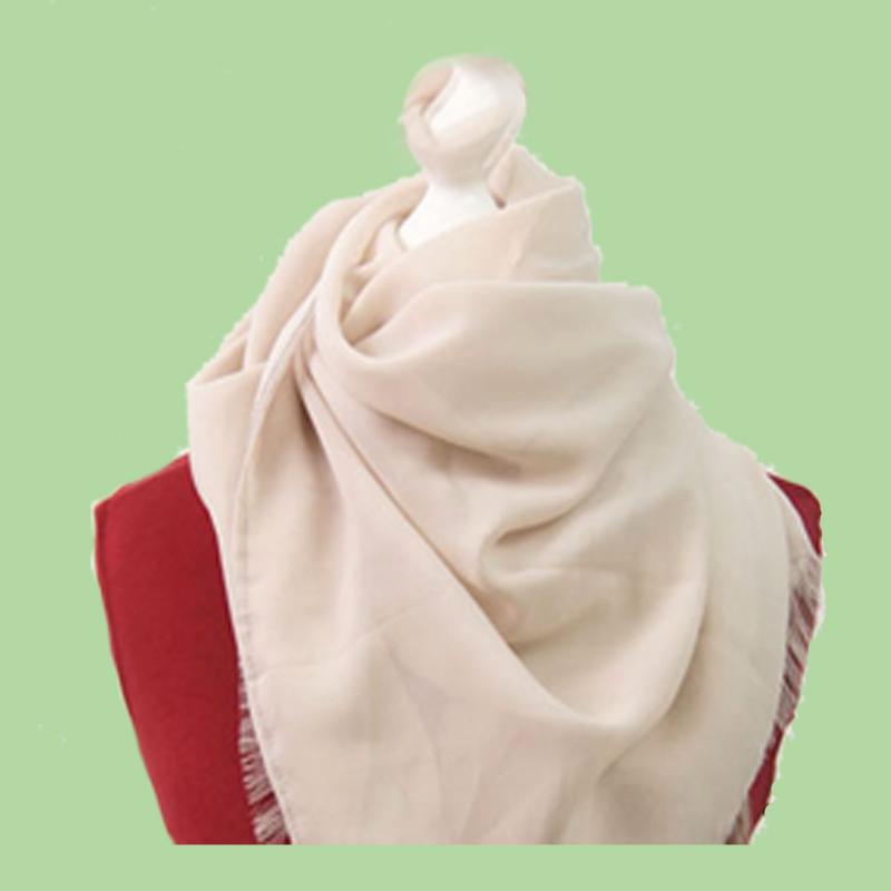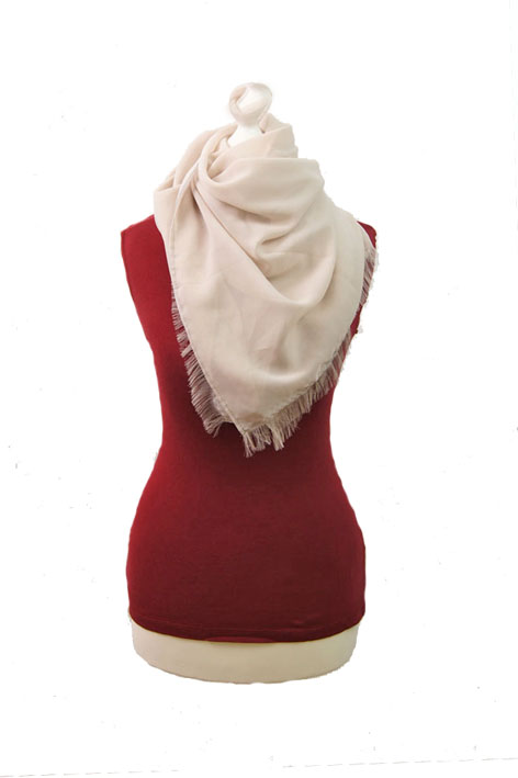Viscose-Chiffon-Tuch, 100% Viscose, 90 cm x 90 cm, creme-beige, mit 3cm langen Fransen an zwei Seiten. Ein feiner, fließender Stoff.