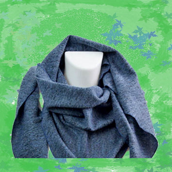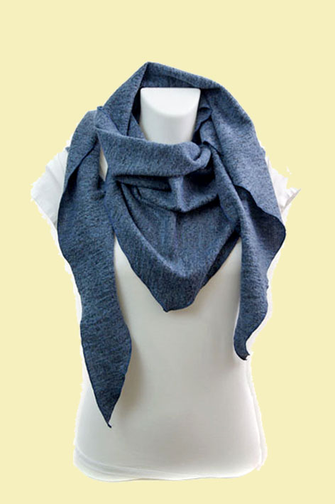Dreieckstuch aus 80% Schurwolle und 20% Poly, ca 198 cm x 55 cm. Sehr leichtes, weiches Tragegefühlt. Klassisch, meliert im Design - Mittelblau mit Schwarz. Ein Tuch, gemacht für die Übergangszeiten und laue Sommernächte!